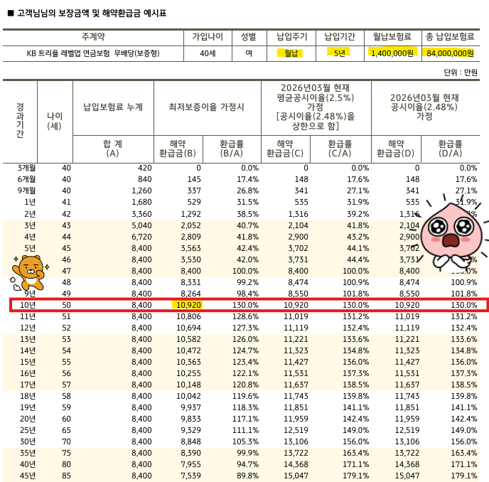 다만 환급률은 공시이율, 상품 구조, 계약 조건 등에 따라 달라질 수 있습니다.